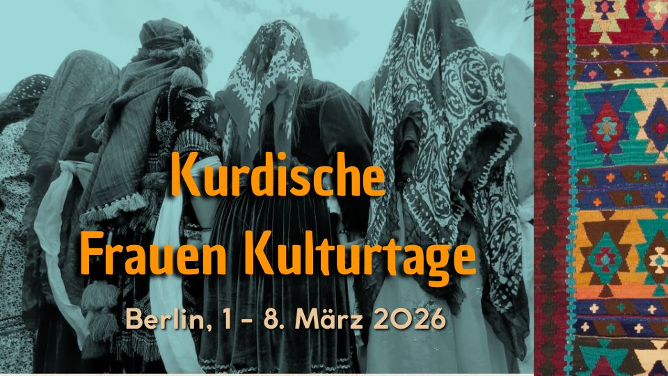 Hevalên hêja û delal! Wir organisieren zum dritten Mal die Kurdischen Frauen Kulturtage in Berlin. Eine Woche vor dem 8. März 2026, in der Kunst, Gemeinschaft und Widerstand den Raum einnehmen. Eine Woche, in der kurdische Frauen ihre Stimmen, ihre Kunst, ihre Selbstbestimmung und ihre Geschichte teilen. Eine Woche, die zeigt: Widerstand ist nicht nur politisch, sondern kulturell, künstlerisch und alltäglich.